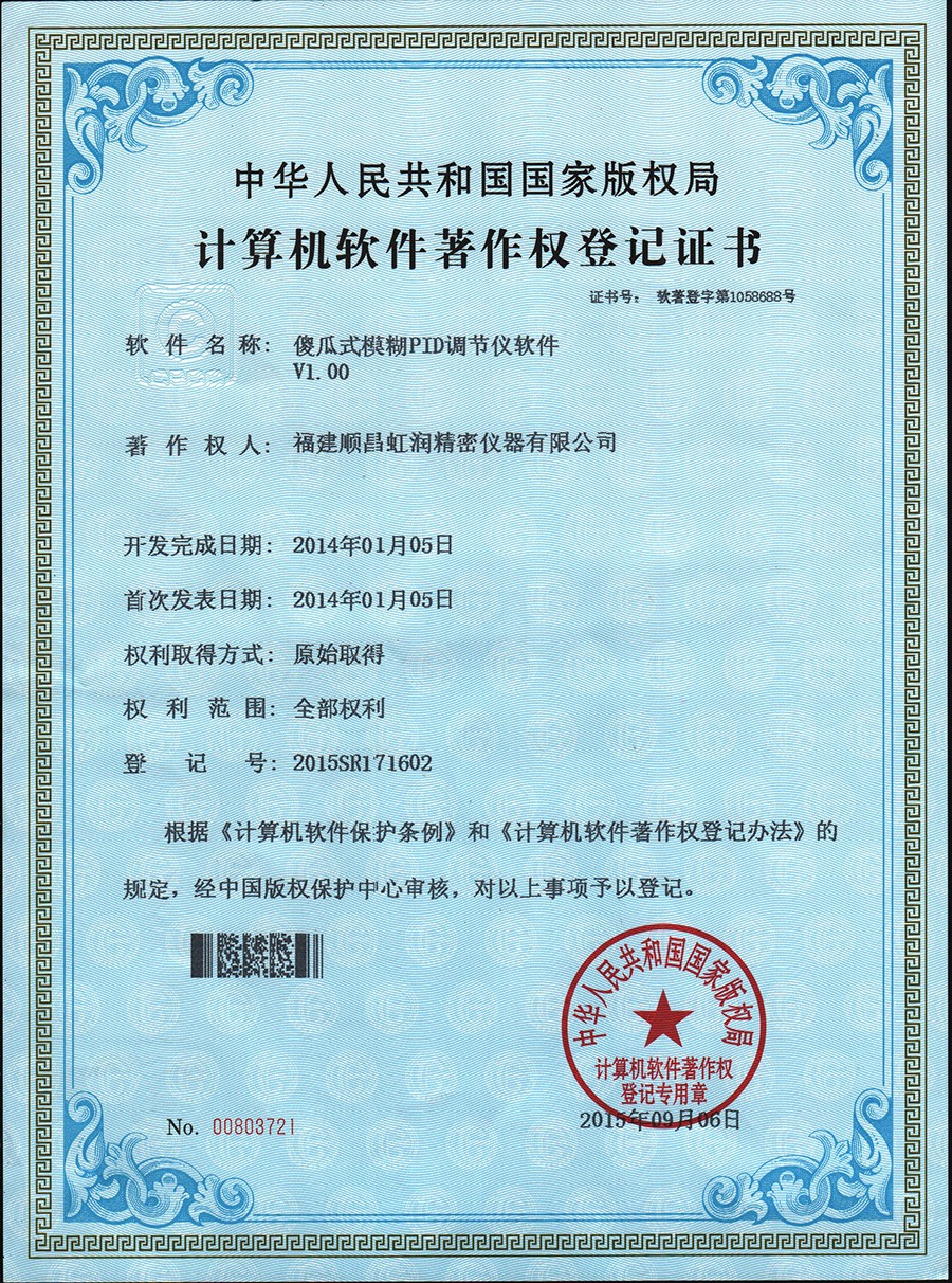 虹潤(rùn)公司人工智能算式與模糊PID算式是虹潤(rùn)公司應(yīng)用自主知識(shí)產(chǎn)權(quán)開發(fā)的新一代智能溫控儀表,產(chǎn)品榮獲一種人工智能調(diào)節(jié)器及其調(diào)節(jié)方法(專利號(hào):2016107742425)、模糊PID控制儀及控制方法(專利號(hào)2015109378814)、一種智能化控制器及自整定方法(專利號(hào)2016103155465)、閥門自動(dòng)、手動(dòng)無(wú)擾動(dòng)操作控制方法及裝置(專利號(hào)2007101540083)4項(xiàng)國(guó)家發(fā)明專利,NHR人工智能模糊PID調(diào)節(jié)器(版權(quán)登記號(hào)2009SR044371)傻瓜式模糊PID調(diào)節(jié)儀軟件V1.00 (版權(quán)登記號(hào)2015SR171602)2項(xiàng)軟件著作權(quán)。