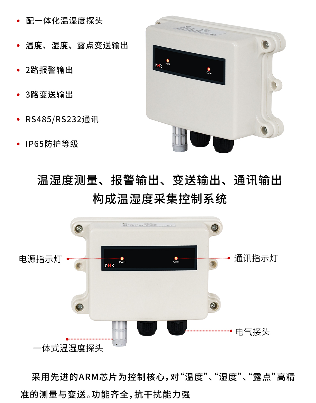 虹潤公司是專業(yè)生產(chǎn)環(huán)境監(jiān)測儀表的國家專精特新“小巨人”企業(yè)。生產(chǎn)的一體式溫濕度變送器,具有溫度、濕度、露點高精準(zhǔn)的測量與變送,報警繼電器輸出,RS485/RS232通訊,IP65防護(hù)等級等特點。產(chǎn)品獲得一種手持式低功耗溫濕度檢測儀、大屏幕溫濕度記錄儀等2項國家發(fā)明專利,主持起草物聯(lián)網(wǎng)智能溫度儀表通用技術(shù)條件、冷鏈溫度記錄儀等2項國家標(biāo)準(zhǔn),以及通信系統(tǒng)多通道數(shù)據(jù)采集控制終端規(guī)范軍用標(biāo)準(zhǔn),以及現(xiàn)場設(shè)備集成等5項智能制造國家標(biāo)準(zhǔn),參與國際5G標(biāo)準(zhǔn)制定,取得溫濕度儀表等3項相關(guān)軟件著作權(quán)。產(chǎn)品廣泛應(yīng)用于工業(yè)現(xiàn)場、農(nóng)業(yè)大棚、倉儲物流、地下管廊、養(yǎng)殖孵化、配電機(jī)房等諸多領(lǐng)域。