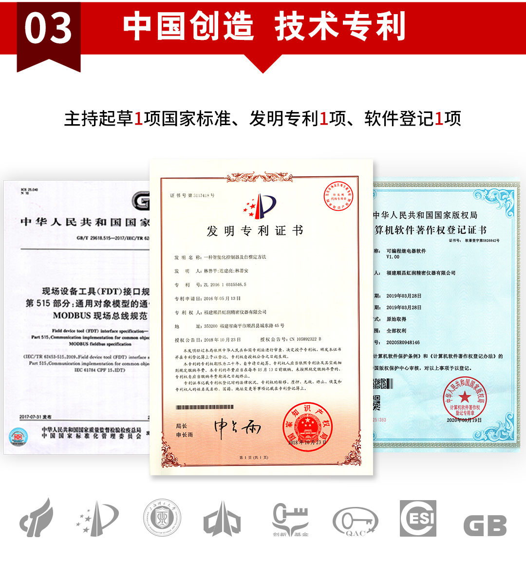 虹潤(rùn)公司是專業(yè)生產(chǎn)PLC控制器的國(guó)家專精特新“小巨人”企業(yè)。生產(chǎn)的簡(jiǎn)易PLC控制器,具有全隔離設(shè)計(jì),中文編程,專業(yè)邏輯控制與時(shí)間,梯形圖編程方式,遠(yuǎn)程RS485通訊監(jiān)測(cè)等特點(diǎn)。產(chǎn)品獲得智能化控制器、多通道可編程繼電器等2項(xiàng)國(guó)家發(fā)明專利;主持起草流程工業(yè)中電氣/儀表和控制系統(tǒng)的試車國(guó)家標(biāo)準(zhǔn),通信系統(tǒng)多通道數(shù)據(jù)采集控制終端規(guī)范軍用標(biāo)準(zhǔn),以及現(xiàn)場(chǎng)設(shè)備集成等5項(xiàng)智能制造國(guó)家標(biāo)準(zhǔn),參與國(guó)際5G標(biāo)準(zhǔn)制定,取得可編程繼電器等2項(xiàng)相關(guān)軟件著作權(quán)。產(chǎn)品廣泛應(yīng)用于工業(yè)自動(dòng)化設(shè)備、電氣自動(dòng)化系統(tǒng)、農(nóng)業(yè)灌溉、包裝機(jī)械、印刷機(jī)械、樓宇自控等諸多領(lǐng)域。