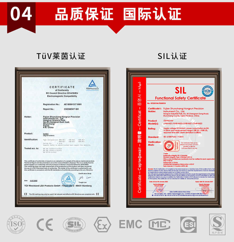 虹潤(rùn)公司是專業(yè)生產(chǎn)隔離器的國(guó)家專精特新“小巨人”企業(yè)。生產(chǎn)的配電器,具有配接二三線制變送器,采用磁隔離技術(shù),響應(yīng)時(shí)間快,抗干擾能力強(qiáng),24V配電輸出,性價(jià)比高等特點(diǎn)。該產(chǎn)品不僅通過(guò)德國(guó)萊茵 CE 認(rèn)證與 SIL 功能安全認(rèn)證,還獲得信號(hào)隔離器、二端子模塊、無(wú)源信號(hào)隔離器等3項(xiàng)國(guó)家發(fā)明專利,主持起草現(xiàn)場(chǎng)設(shè)備工具(FDT)接口規(guī)范、工業(yè)過(guò)程測(cè)量和控制系統(tǒng)用隔離式安全柵、工業(yè)過(guò)程測(cè)量和控制系統(tǒng)用配電器等3項(xiàng)國(guó)家標(biāo)準(zhǔn),以及通信系統(tǒng)多通道數(shù)據(jù)采集控制終端規(guī)范軍用標(biāo)準(zhǔn),參與國(guó)際5G標(biāo)準(zhǔn)制定。產(chǎn)品廣泛應(yīng)用于石油、化工,冶金、電力、食品、光伏能源、污水處理等需要電隔離的工業(yè)自動(dòng)化控制系統(tǒng)。