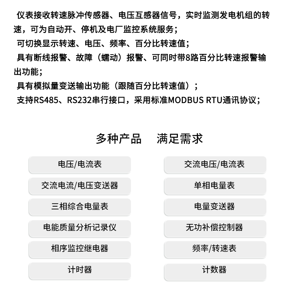 虹潤公司是專業(yè)生產(chǎn)頻率表的國家專精特新“小巨人”企業(yè)。生產(chǎn)的電廠專用轉(zhuǎn)速表,具有雙屏LED 數(shù)碼顯示,脈沖/電壓主輔輸入,峰值記憶,支持RS485/RS232通訊等特點。產(chǎn)品獲得基于儀表殼體、一種儀表電源等2項國家發(fā)明專利,主持起草流程工業(yè)中電氣/儀表和控制系統(tǒng)的試車國家標(biāo)準(zhǔn),通信系統(tǒng)多通道數(shù)據(jù)采集控制終端規(guī)范軍用標(biāo)準(zhǔn),以及現(xiàn)場設(shè)備集成等5項智能制造國家標(biāo)準(zhǔn)。參與國際5G標(biāo)準(zhǔn)制定,取得頻率轉(zhuǎn)速儀表等2項相關(guān)軟件著作權(quán)。產(chǎn)品廣泛應(yīng)用于電力系統(tǒng)、機械制造、汽車工業(yè)、航空航天、船舶海事、冶金礦山等行業(yè)的頻率與轉(zhuǎn)速參數(shù)監(jiān)測。