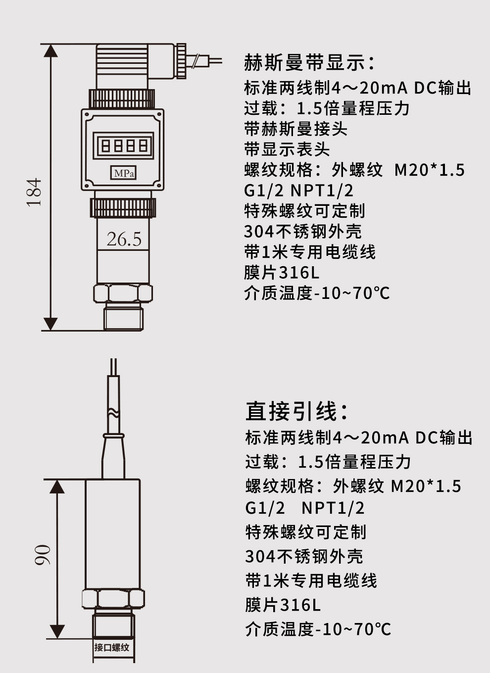 虹潤(rùn)公司是專業(yè)生產(chǎn)壓力變送器的國(guó)家專精特新“小巨人”企業(yè),生產(chǎn)的小巧型壓力變送器,具有采用進(jìn)口芯體,量程范圍寬,抗沖擊抗震動(dòng),多種螺紋接口,性能穩(wěn)定等特點(diǎn)。產(chǎn)品獲得一種數(shù)字顯示低功耗壓力表、一種信號(hào)發(fā)生器裝置等2項(xiàng)國(guó)家發(fā)明專利,主持起草工業(yè)過(guò)程控制系統(tǒng)用模擬輸入兩位或多位輸出儀表、工業(yè)過(guò)程測(cè)量和控制系統(tǒng)用壓力/差壓變送器等2項(xiàng)國(guó)家標(biāo)準(zhǔn),通信系統(tǒng)多通道數(shù)據(jù)采集控制終端規(guī)范軍用標(biāo)準(zhǔn),以及現(xiàn)場(chǎng)設(shè)備集成等5項(xiàng)智能制造國(guó)家標(biāo)準(zhǔn),參與國(guó)際5G標(biāo)準(zhǔn)制定,取得數(shù)顯壓力表等2項(xiàng)相關(guān)軟件著作權(quán)。產(chǎn)品廣泛應(yīng)用于化工、食品、制藥、電力、設(shè)備配套、供暖、水處理、樓宇等行業(yè),需精準(zhǔn)測(cè)量流體壓力的現(xiàn)場(chǎng)。