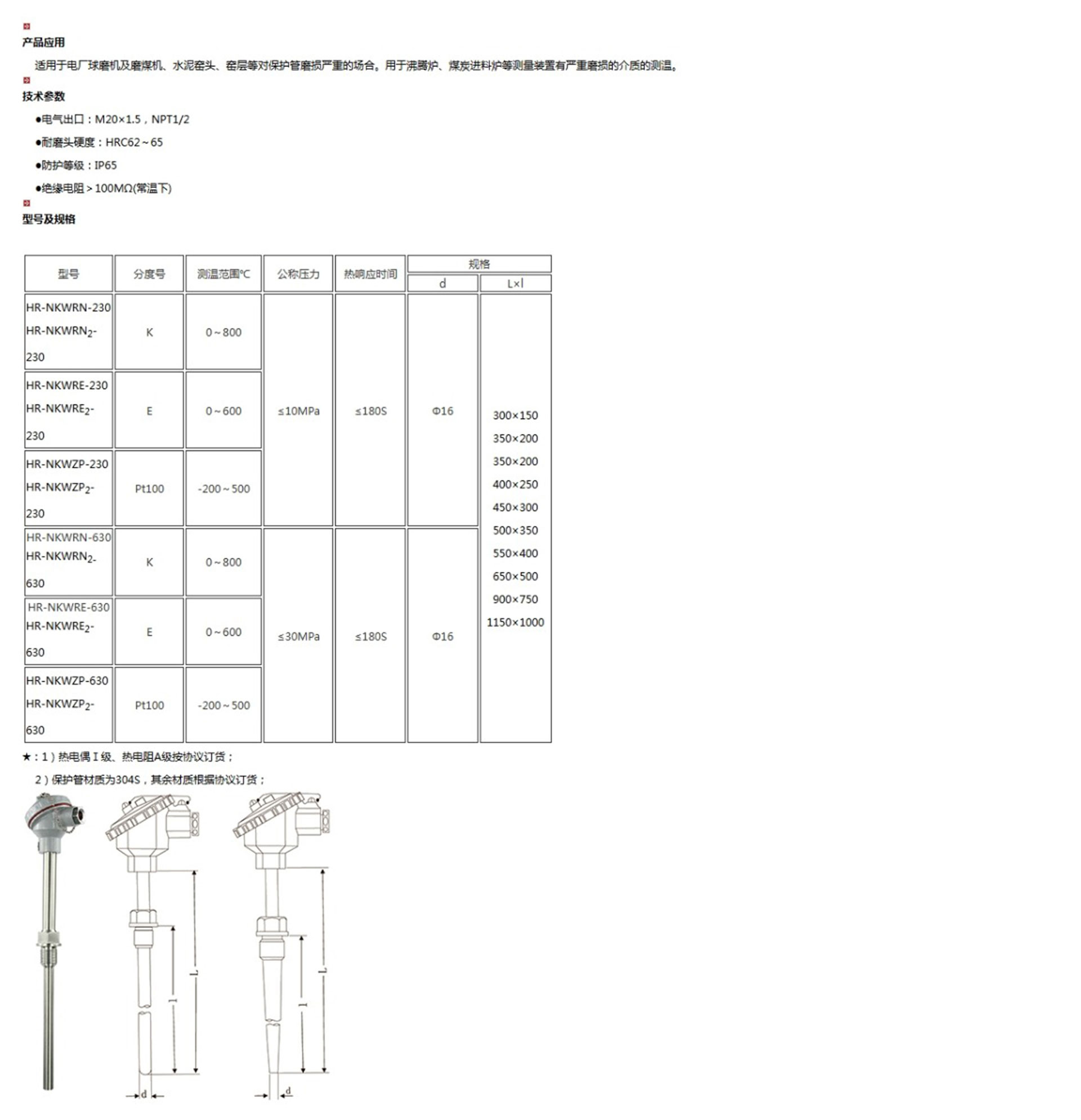 耐磨熱電偶(阻)采用等離子噴漆技術(shù)、高鉻鑄鐵和高溫合金不同材料制成的耐磨保護管,專門為高、中、低溫耐磨環(huán)境的測量場合設(shè)計制造的,可適用于循環(huán)流化床、沸騰爐、水泥回轉(zhuǎn)窯尾煙室