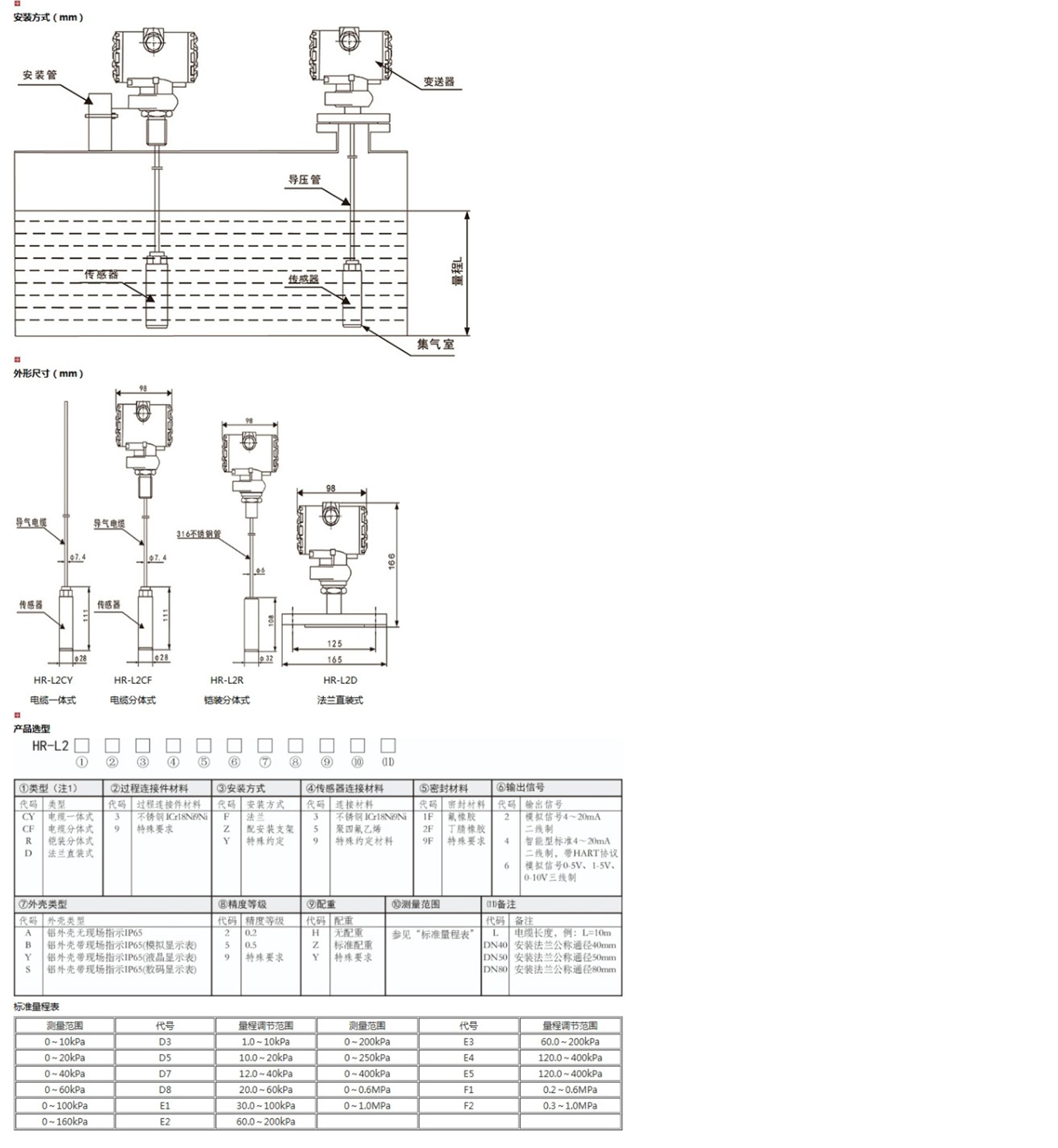 HR-L系列靜壓液位變送器使用進口高精度、高穩(wěn)定性擴散硅壓力敏感芯片,通過高可靠性的放大電路,將被測液體的液位信號轉換成4~20mA DC標準信號。